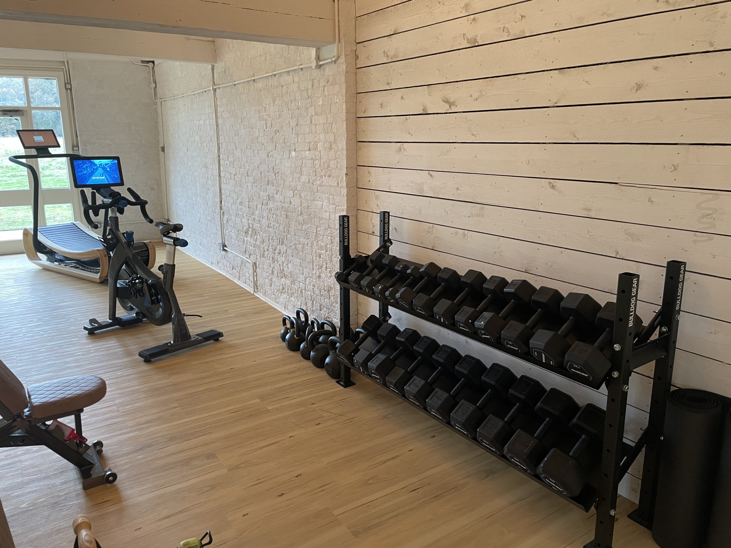 Open seven days a week from 8am to 8pm, the brand new biophilic gym is designed to bring the wellbeing benefits of the great outdoors, inside. Featuring handcrafted kit made of natural materials you can work with our sports and recreation manager to create a bespoke work-out experience which supports Fritton Lake’s commitment to sustainability. Three zones are dedicated to cardiovascular, strength and mobility. Equipment includes an oak-framed curved treadmill, water rowing machine and an array of weights including a power rack. Stretching and cool downs are on cork yoga mats, eco foam rollers and mobility balls made from vegan leather. Our therapy room will be used for sports massage, with spa and beauty treatments coming soon.