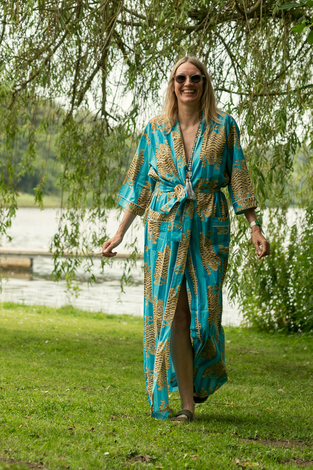 The quality cotton fabric has a unique design commissioned by the Kaftan Sisters and sourced from Rajasthan.